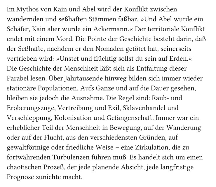 Quelle: Hans Magnus Enzensberger „Die Große Wanderung. 33 Markierungen, in: Versuche über den Unfrieden“