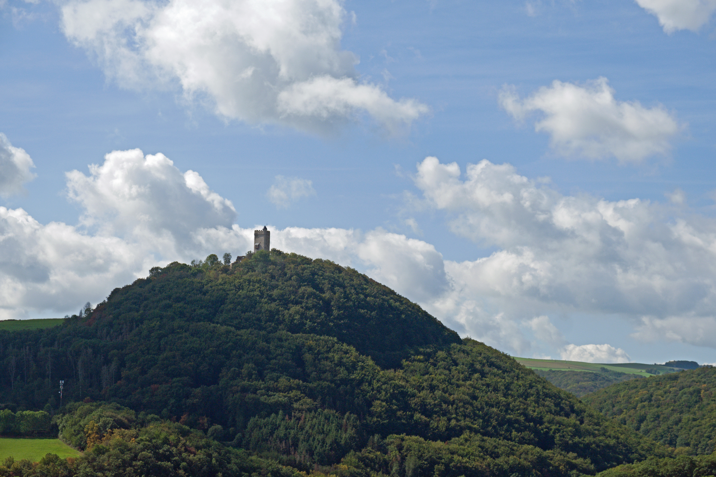 Die Burgruine Olbrück im Brohltal bei Niederdürenbach, nord-westlich der Benediktiner-Abtei Maria Laach (*) gelegen, ist einer der ältesten Eifelburgen. Selbst als Ruine ist dieses Restbauwerk eine imposante Erscheinung und von weitem sichtbar! Dieses ehemalige Lehen des Grafen Theoderich von Wied wurde dem Kölner Erzbischof Philipp von Heinsberg um 1190 für eine Summe von 400 Mark verliehen. (lt. Hans-Peter Pracht – Autor des geschichtlichen Berichtes zur Burg Olbrück ) Als kurzfristiger Eigentümer im Jahr 1917 wird Dr. Hermann Hoesch aus Düren vom Autor Pracht genannt.