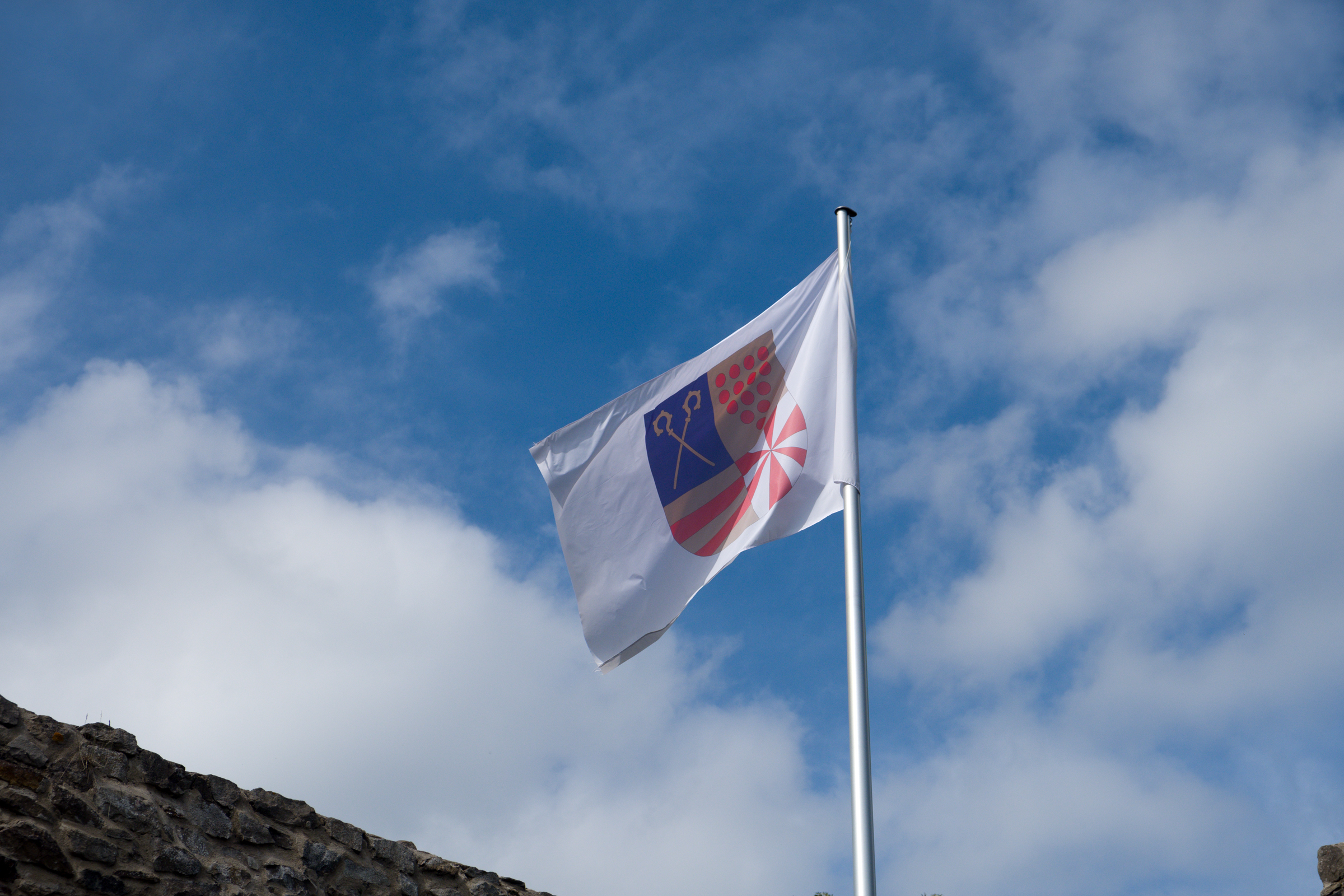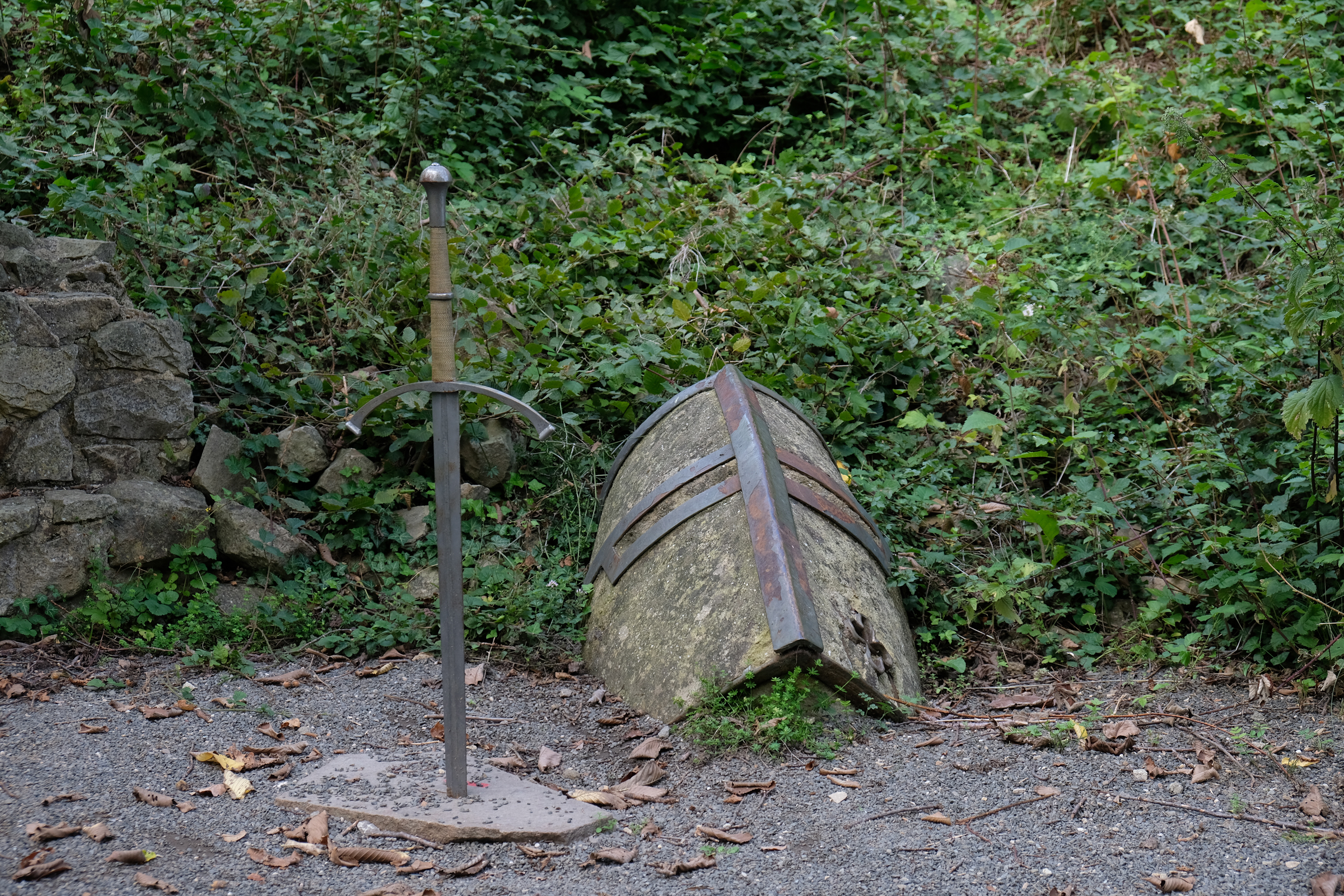 Symbole-des-Rittertums / heute installiert als Element akustisch-elektronischer Informationen zur Ruine